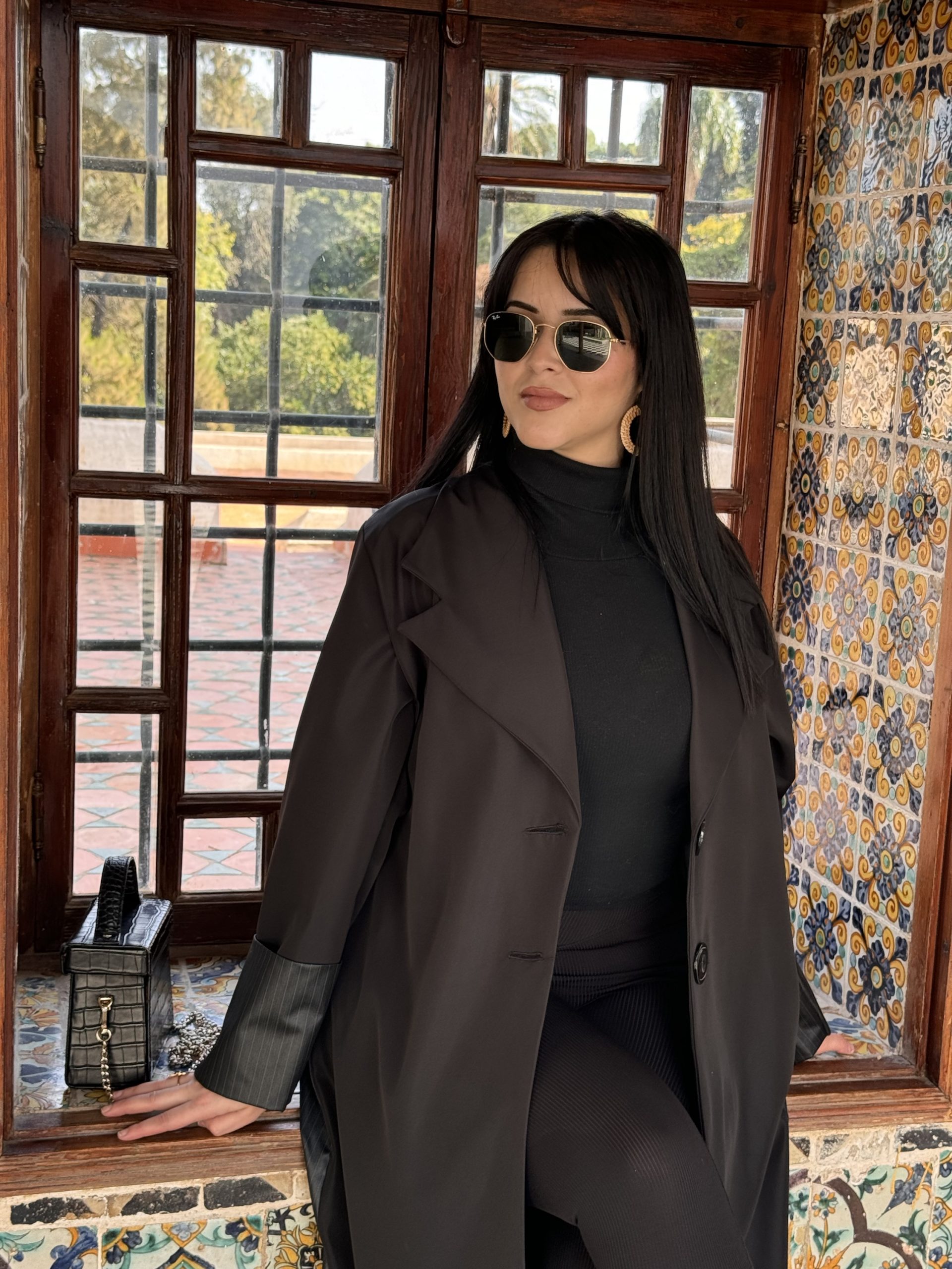 • Son design distinctif se distingue par l’intégration d’un tissu à riyure subtilement placé au dos et sur les manches, apportant une touche d’élégance et de mouvement qui fait tout le charme de ce modèle.
