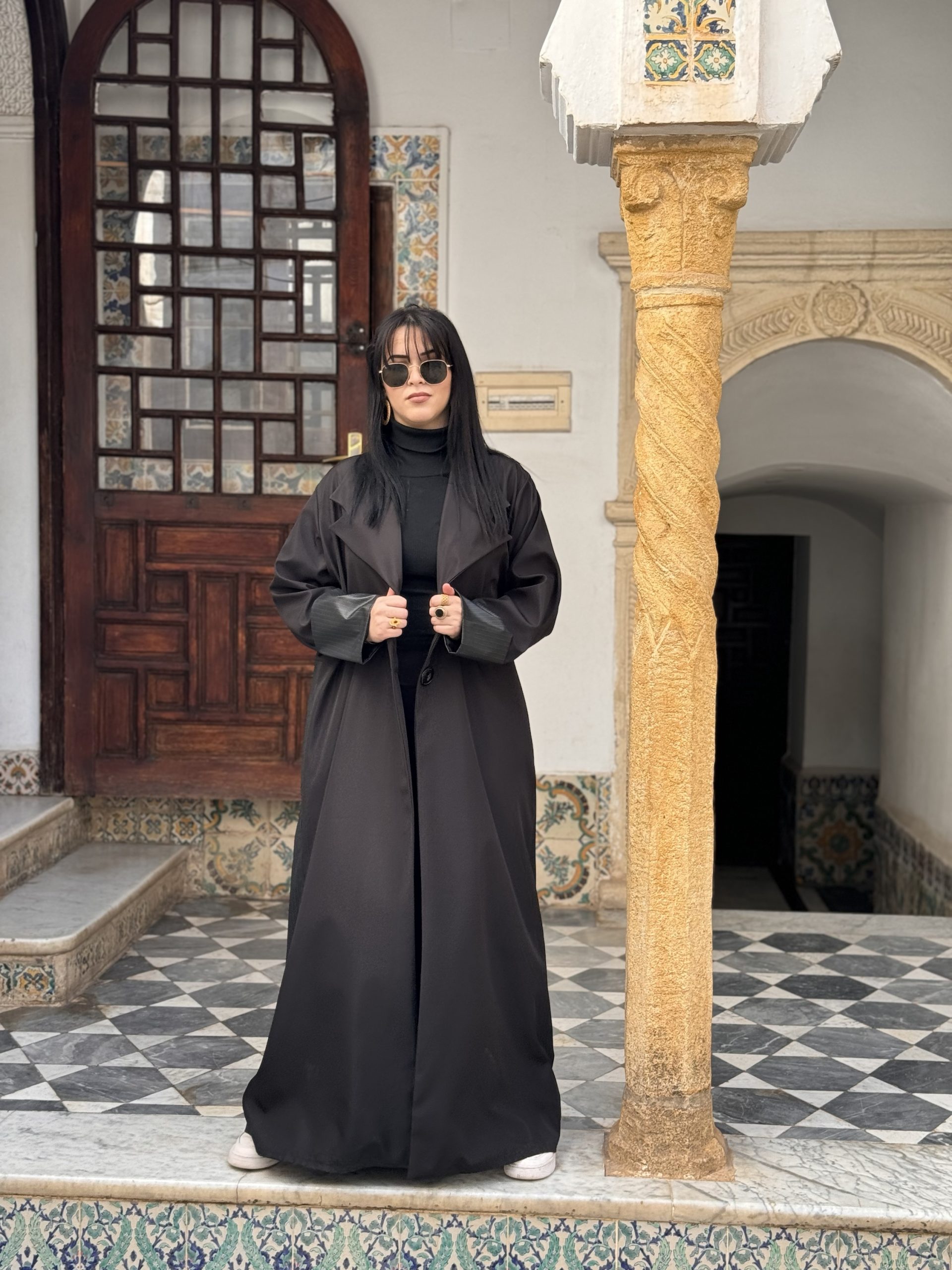 • Cette abaya novatrice allie sophistication et fonctionnalité.