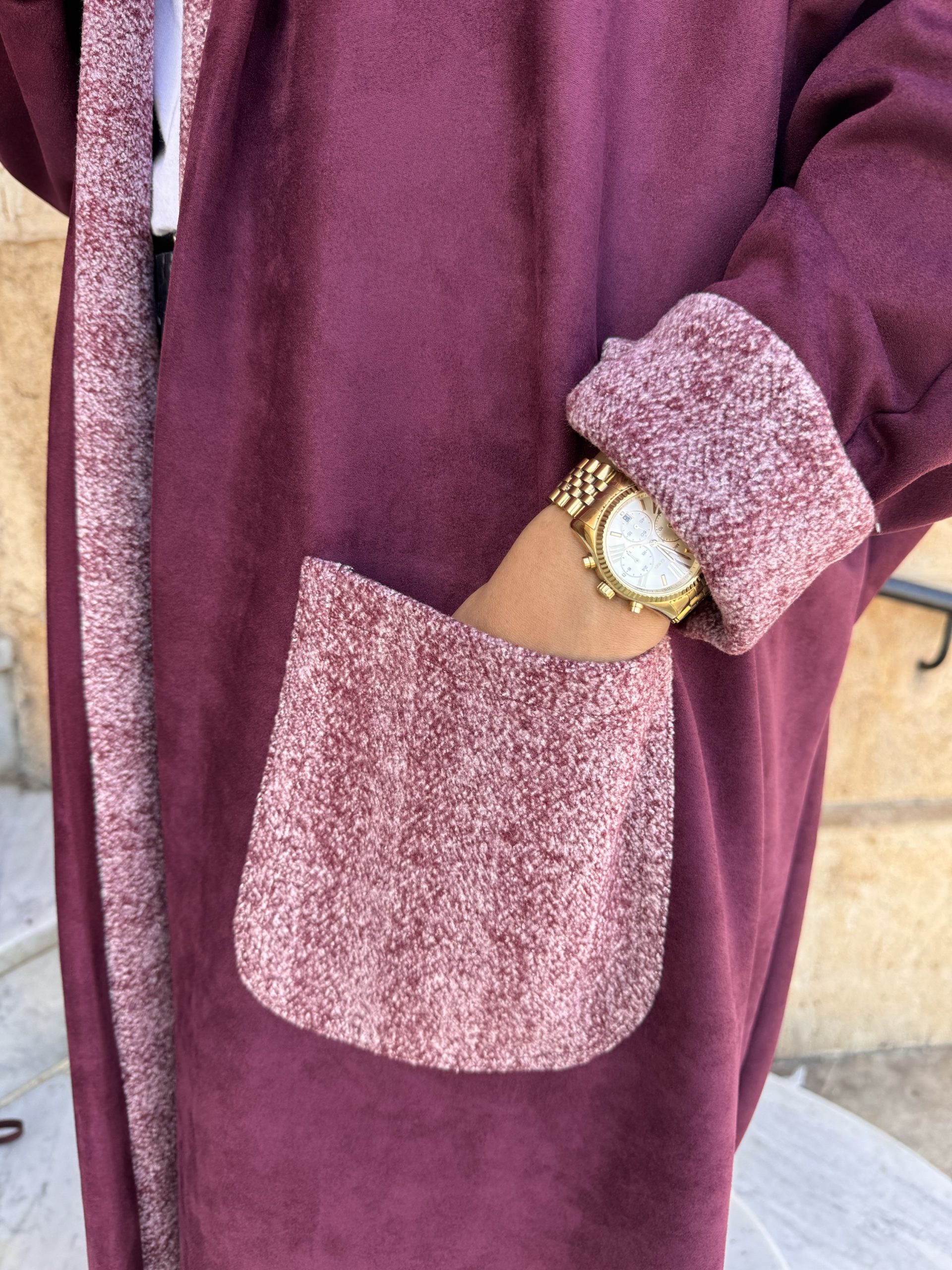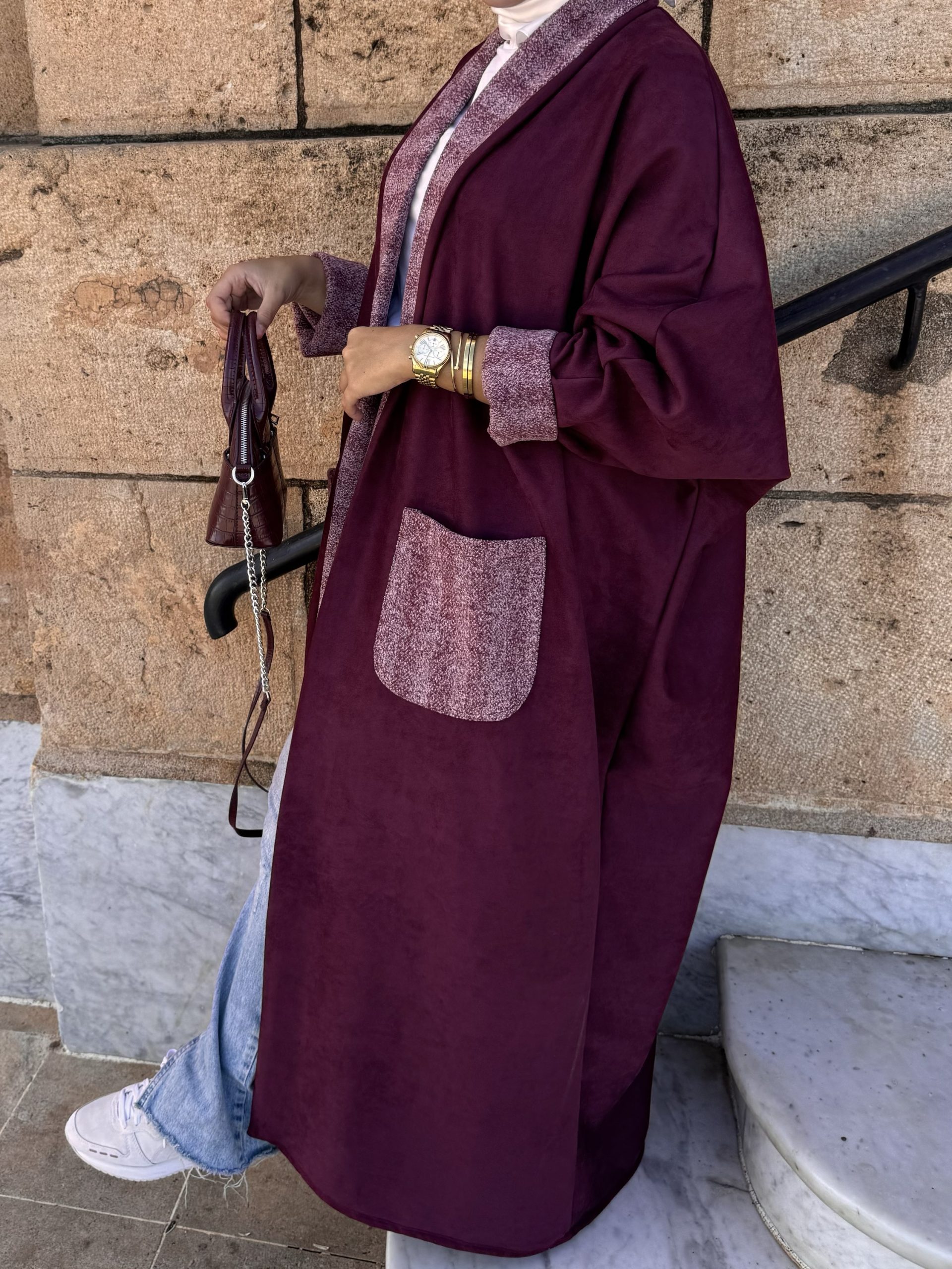 • Disponible en deux coloris, le noir classique qui s’adapte à toutes les occasions, et le cerise, une teinte très tendance cette année, cette abaya allie confort et style pour un look chic et intemporel.